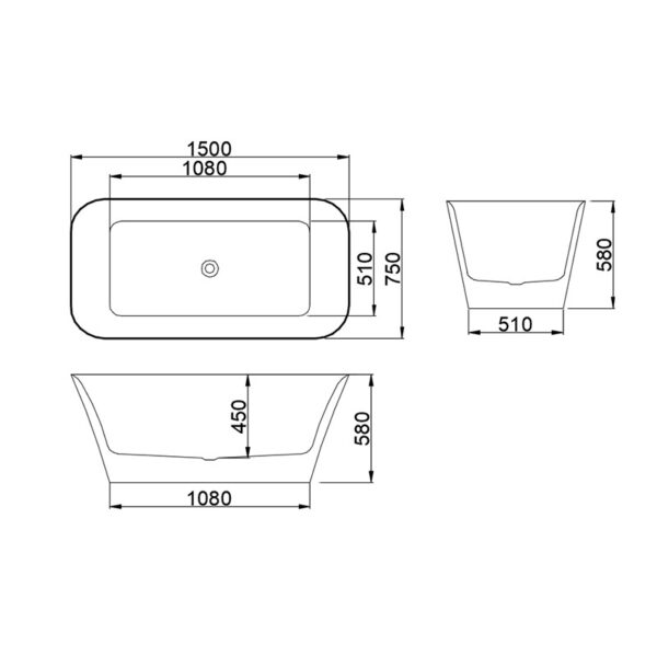 Freestanding Bathtub VAOLI 511A White with Black Overflow 1500×750 mm