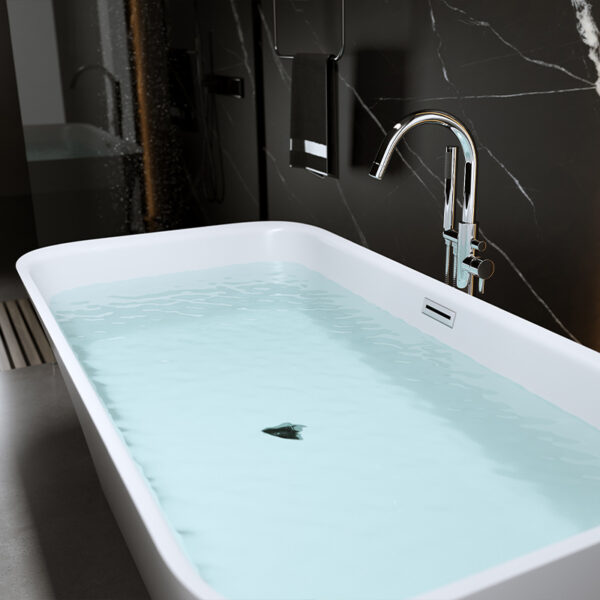 The surface of every bathtub is perfectly smooth and non-porous, making cleaning effortless. Our high-quality sanitary acrylic not only guarantees excellent thermal insulation but also creates a protective barrier against dirt and impurities.