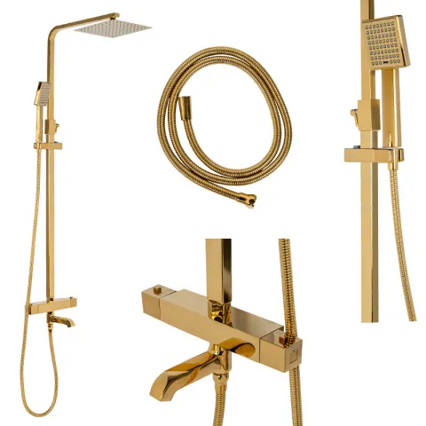 SHOWER MIXER WITH THERMOSTAT AND RAIN SHOWER T154C GOLD