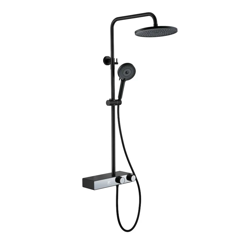 LCD Wall-mounted shower mixer with a rain shower head F10B BLACK