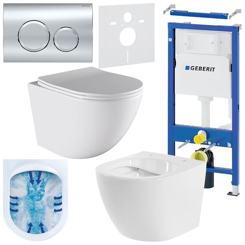CONCEALED WC SET CELESTE 02RIM WHITE TOILET BOWL + FRAME GB + CHROME FLUSH PLATE 01GD