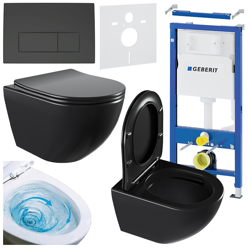 CONCEALED WC SET AERO 01RIM BLACK MATT TOILET BOWL + FRAME GB + BLACK MATT FLUSH PLATE 50GD