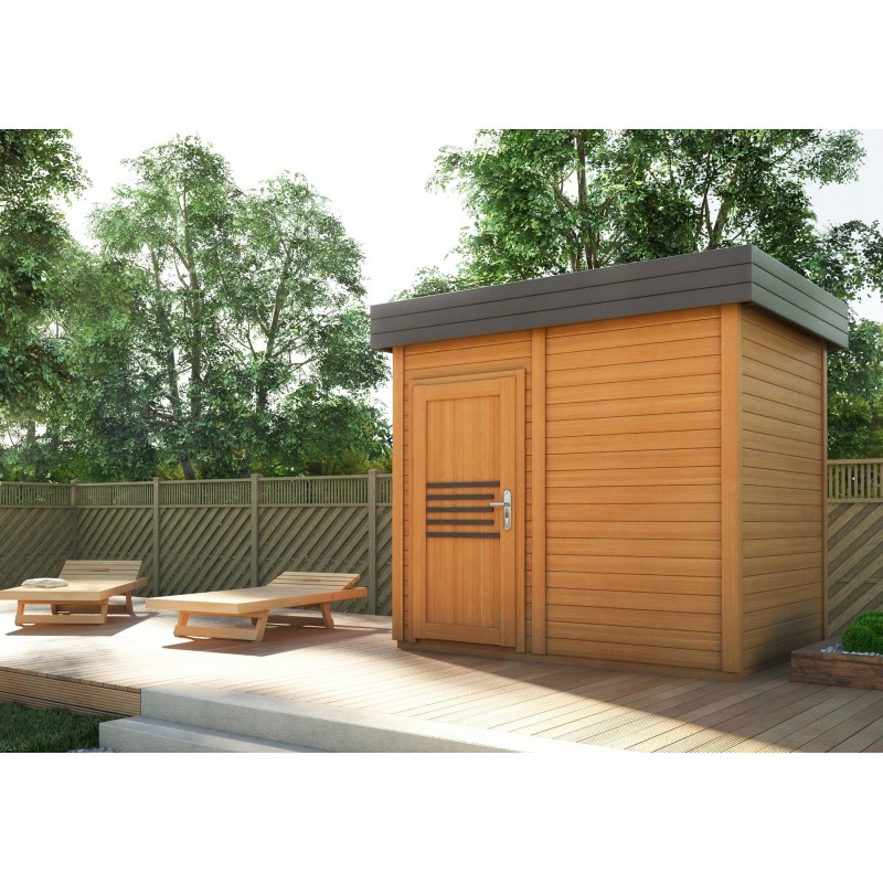 A dry sauna, also called a Finnish sauna, is characterised by hot and dry air. We will not experience high humidity in it – it oscillates around 20%. An important difference between a dry and Roman sauna is the temperature. The Finnish sauna has temperatures as high as 100 degrees Celsius. A dry sauna is made of wood.