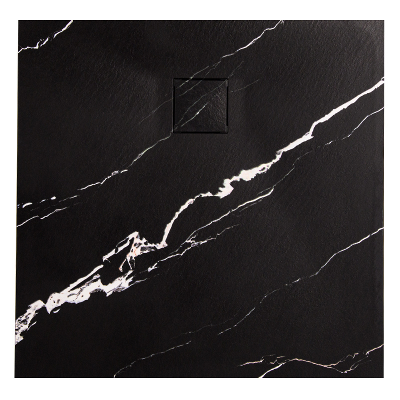 Square stone shower tray CAIR 800x800mm BLACK marble pattern siphon slim 26mm