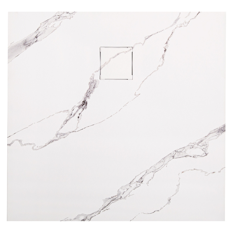 Square stone shower tray CAIR 800x800mm WHITE marble pattern siphon slim 26mm