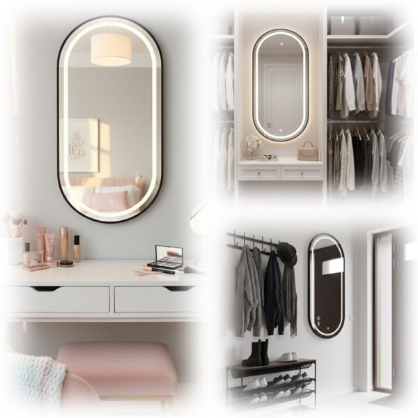 LED BACKLIT BATHROOM MIRROR OVAL WALL-MOUNTED ELORA 400 × 800 MM – 3 LIGHT COLOURS