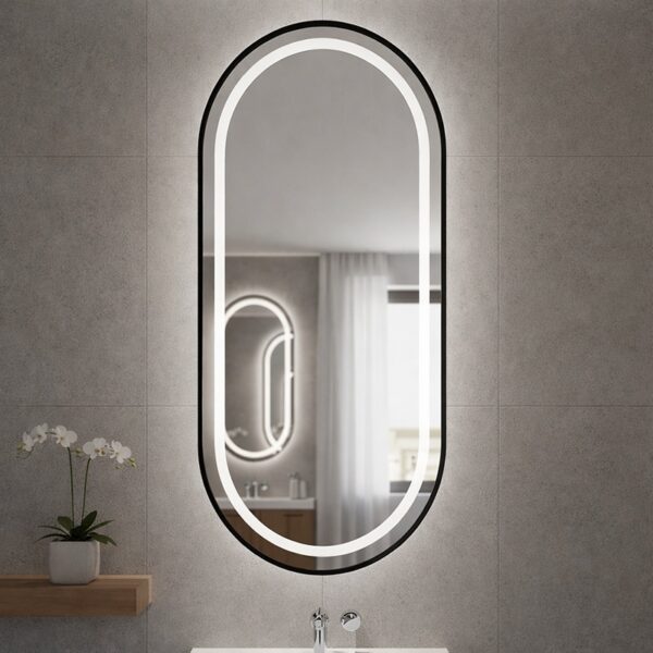 LED BACKLIT BATHROOM MIRROR OVAL WALL-MOUNTED ELORA 500 × 1000 mm – 3 LIGHT COLOURS