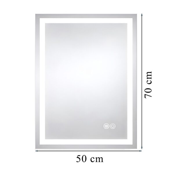 LED Backlit bathroom rectangular mirror wall-mounted LUMI 500 x 700 mm – 3 light colours, anti-fog