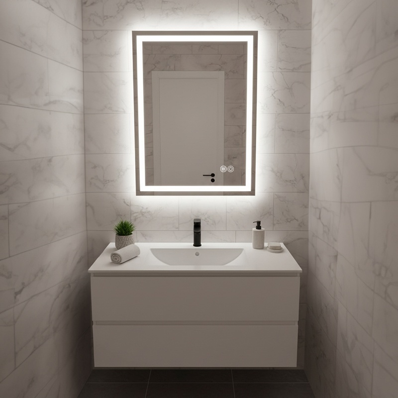 The integrated heating pad keeps the mirror surface clear without wiping or waiting. It gently warms the glass to prevent condensation, allowing you to enjoy a fog-free reflection even after a hot shower.
