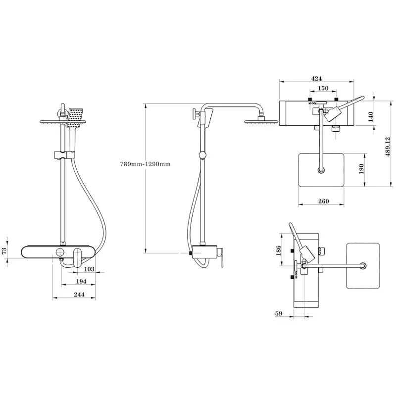 Height: adjustable from 780 to 1290 mm