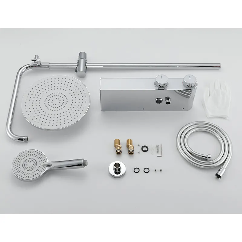 Included: mounting elements, faucet, overhead shower, hand shower, hose