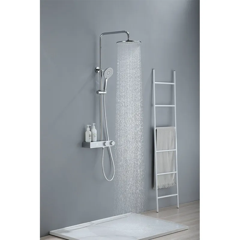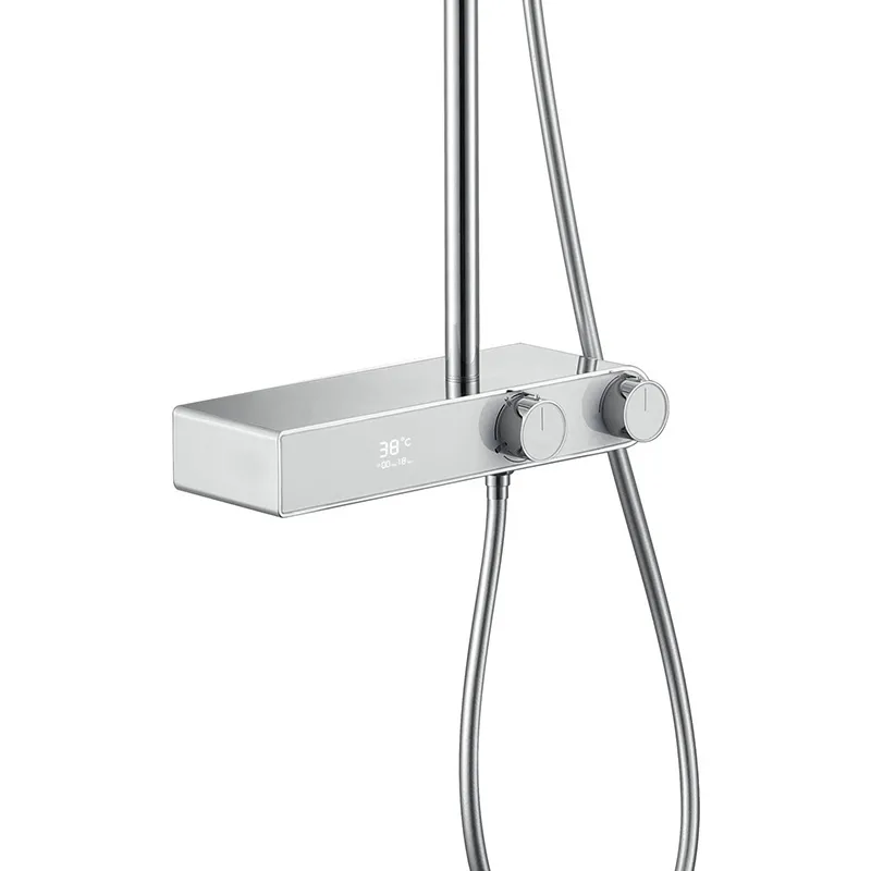 The Crystal Bathroom F12A shower faucet with LCD display combines modern design, functionality, and high user comfort. This set is perfect for both contemporary and classic bathroom arrangements, offering full control over your shower experience. The large overhead shower placed on a fixed arm ensures a pleasant and even water stream. The built-in LCD display, powered by a flow turbine, requires no batteries or external power supply – it shows the current water temperature, providing extra safety and comfort. A practical hand shower with an Anti-Calc system and an ergonomic double-braided hose guarantees convenience and durability during daily use. The polished glass body with PUSH ON knobs and adjustable height completes the set.