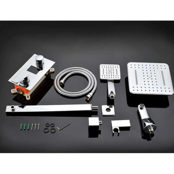 The shower system is an ideal solution for the bathroom. It provides high comfort. A comfortable rain shower on a fixed arm and a hand shower with two water streams allow you to adjust the type of bath to your current needs. The faucet, which is the main element of the system, is equipped with a thermostatic head. It reacts in a fraction of a second to temperature fluctuations in the installation and compensates for them, guaranteeing absolute safety.