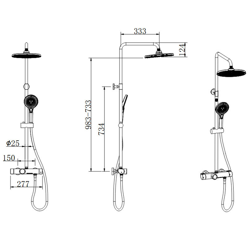 - Rain shower head: composite, round diameter 25 cm with anti-lime system