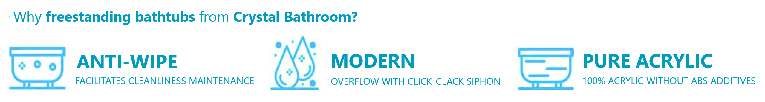 Discover our freestanding bathtubs made of premium white sanitary acrylic reinforced with fiberglass and enriched with the revolutionary Anti-Wipe coating. Each bathtub combines modern style with exceptional bathing comfort.