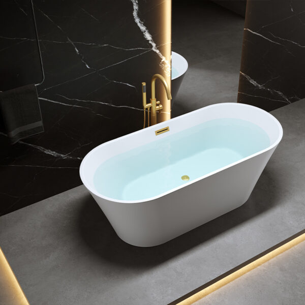 FREESTANDING BATHTUB SKYLAR 502A WHITE WITH BRUSHED GOLD OVERFLOW 1500×750 MM