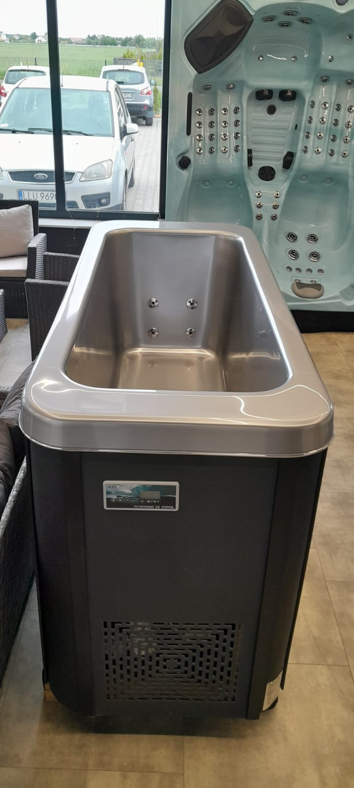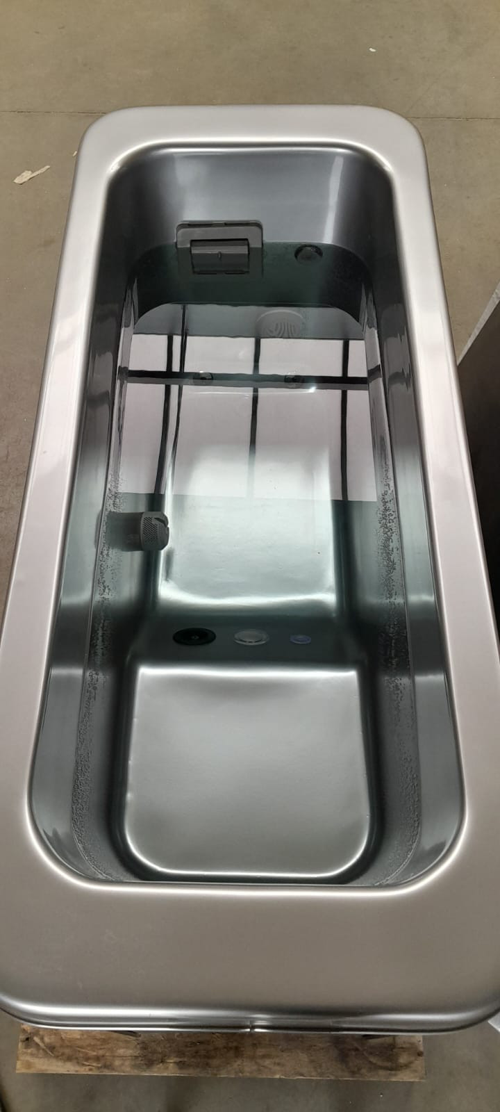 Alaska is a bathtub in which the body is cooled down with cold water – an increasingly popular and valued treatment after a physically demanding workout, sports effort or a visit to the sauna. Using heat pumps, we can lower the temperature of the water in the bath to 5,5C°, thanks to which even a short bath can have positive health effects. A sudden decrease in temperature is beneficial for the work of the heart, especially in circulatory problems, and has a positive effect on stimulating blood circulation. Considering that we have about two heat receptors and 12 cold receptors per 1 cm2 of skin and that the adaptation time to low temperature is many times shorter than to high temperature, one can expect greater effectiveness of cold treatment than heat treatment. It was also verified that the heat loss in water is about 250 times greater than in air at the same temperature. The reasons mentioned above motivated the creation of a bathtub for cold water therapy.