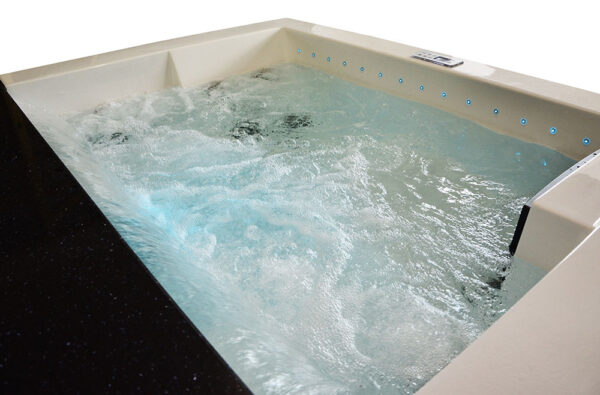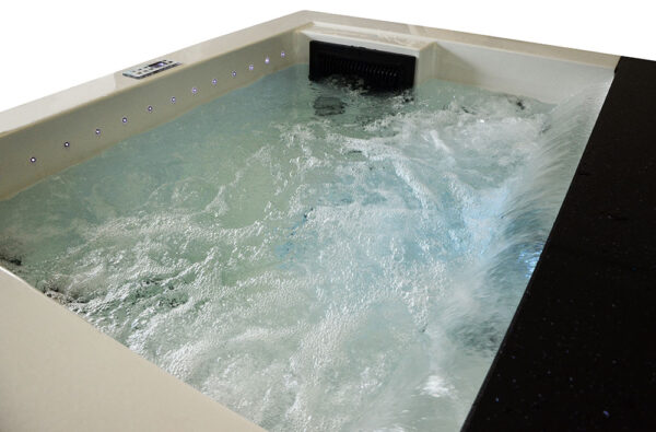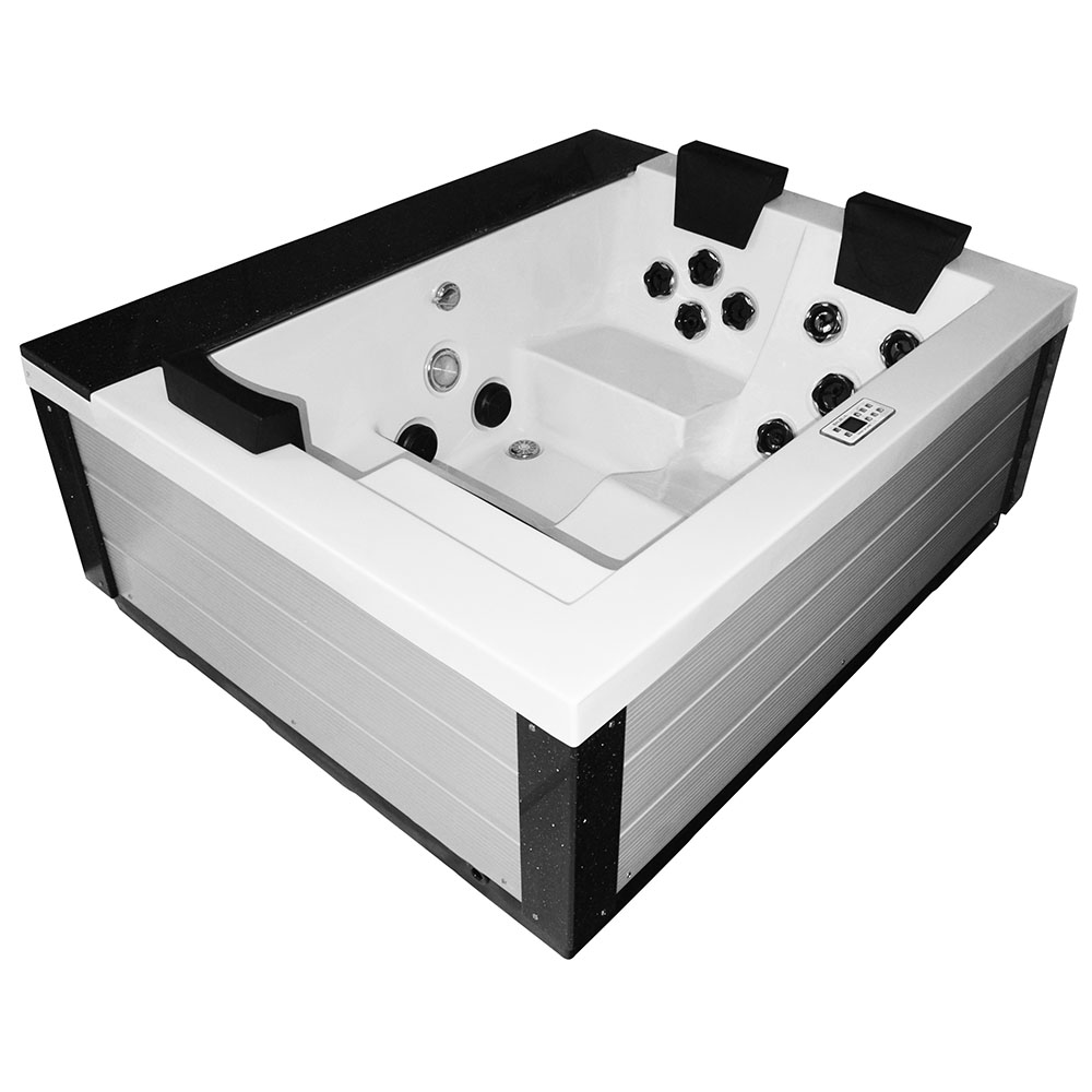 The structure is made of stainless steel. The entire bathtub is based on a stable stainless steel frame; the bathtub has a strong and durable support base, which is very important for larger bathtubs. The weight of such SPAs, from 250 kg to even 1500 kg, in swimming pools, including the weight of water and people, is a relatively large weight, which requires solid support, which is why a good bathtub design is so crucial.