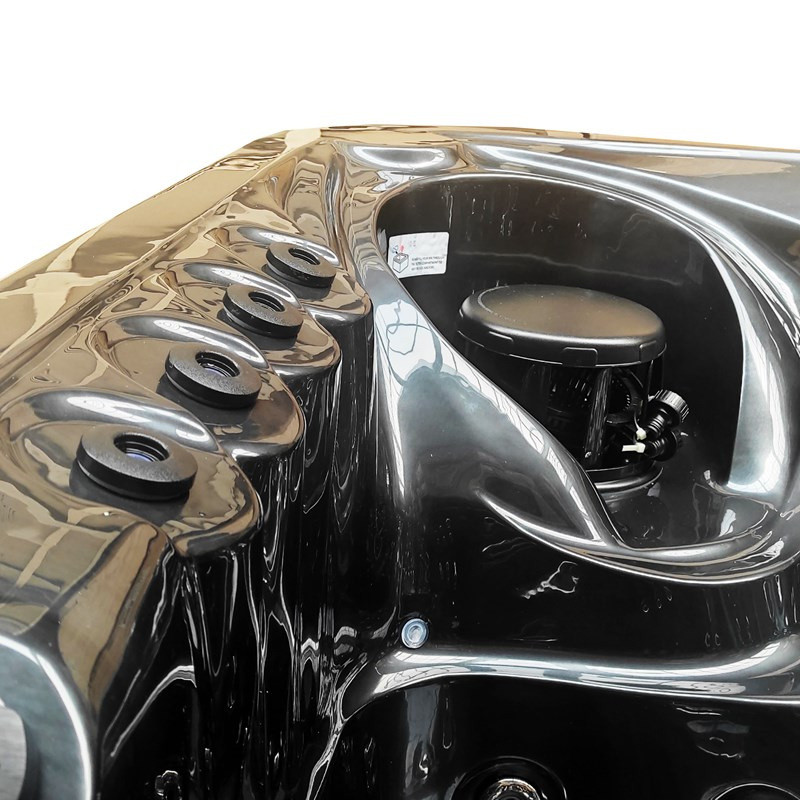 - Rich equipment as standard: seven-color LED lighting, a large number of massage jets and their various sizes, powerful water pumps, energy-saving circulation pump, powerful 3KW water heater, full insulation of the Jacuzzi basin with PUR foam 25-30mm thick, aromatherapy, venting water jets each station, ozonation, polymer floor plate. Check what other options you can choose for your SPA.