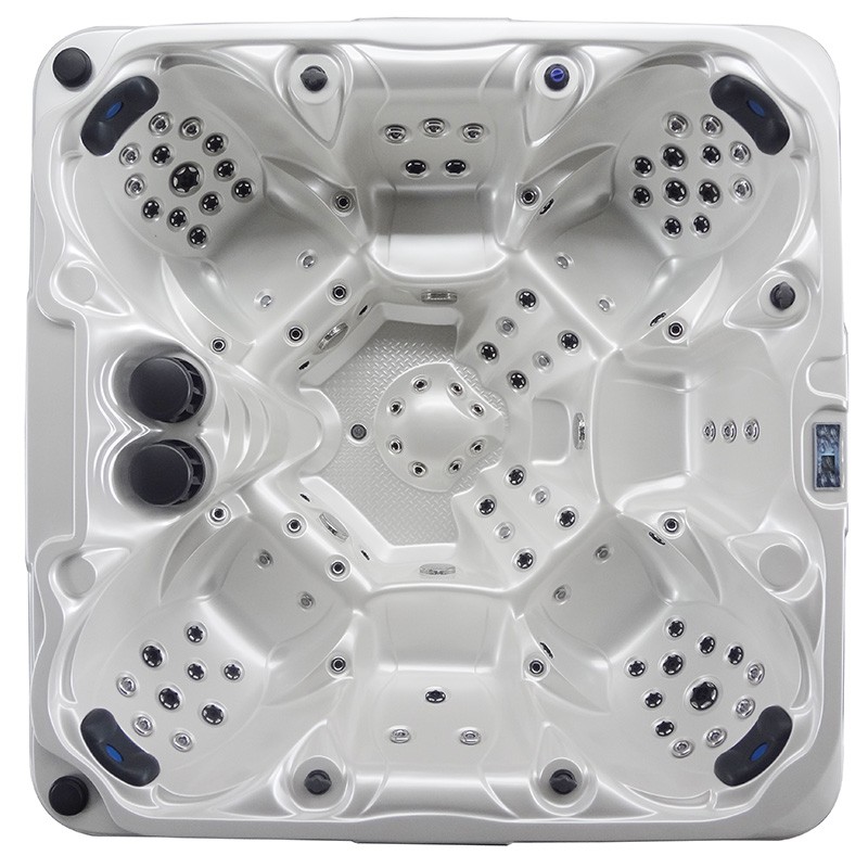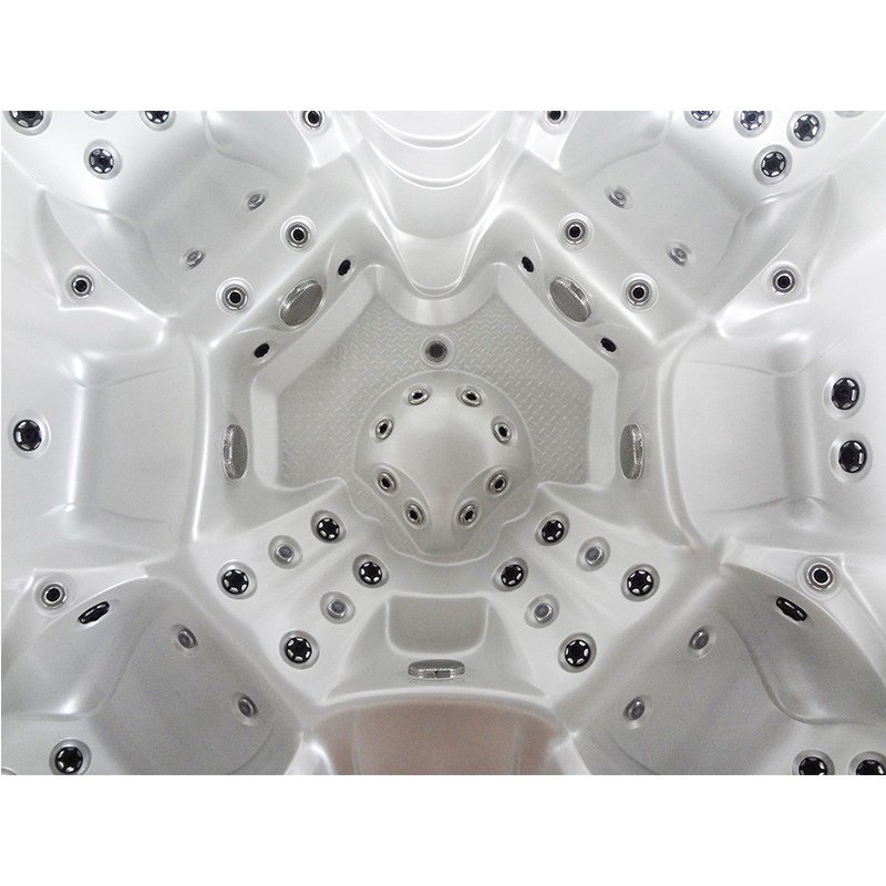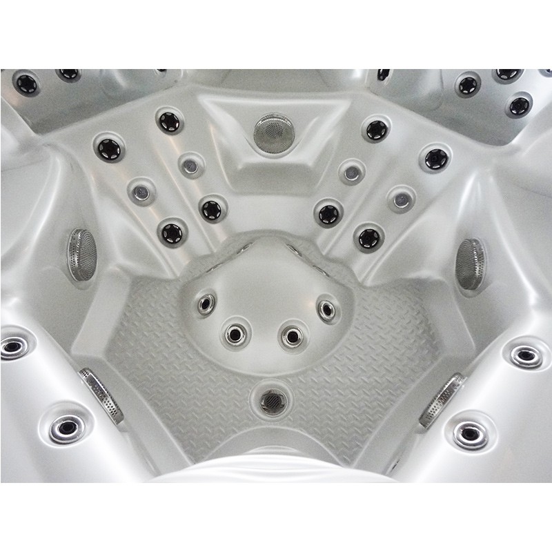 - A one-piece floor plate forms the basis of the Jacuzzi. The board is constructed in such a way as to create a barrier resistant to moisture, insects, and the cold ground on which the SPA will be located. The floor plate also prevents energy loss, thanks to which the bottom of the bathtub is very tight. There is no gap between the tub and the hob. The floor plate gives the bathtub extra stability!