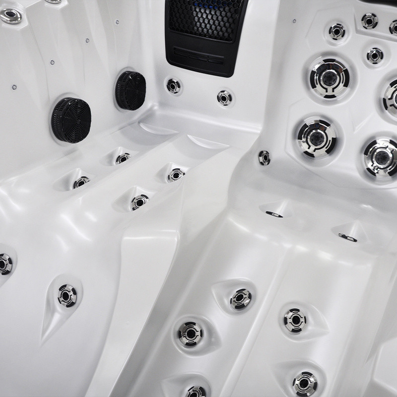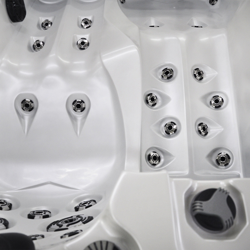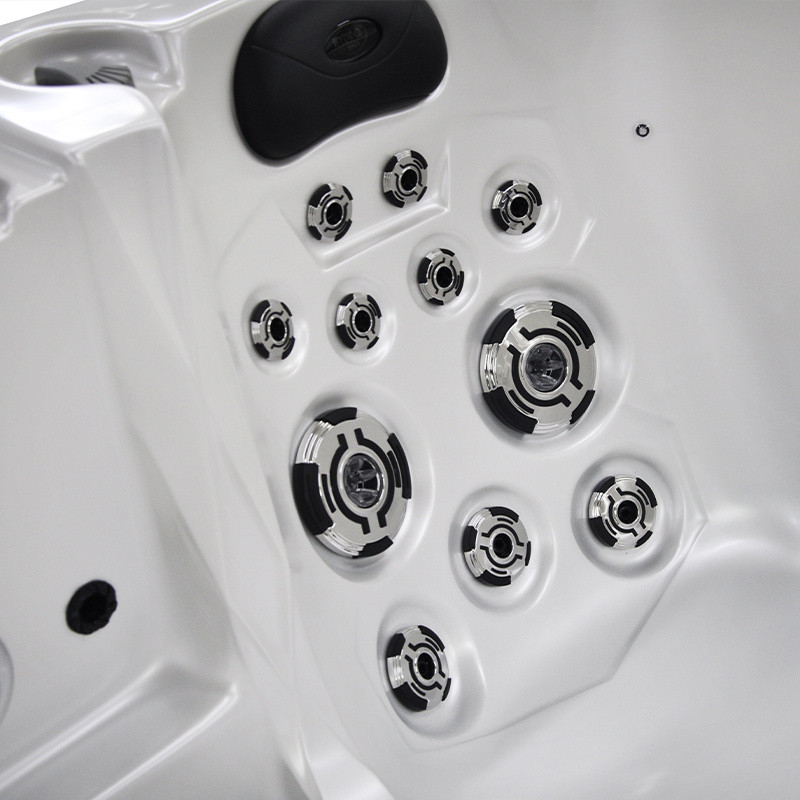 • Flush-mounted jets: All jets are embedded in the acrylic shell for maximum comfort (no protruding jets).
