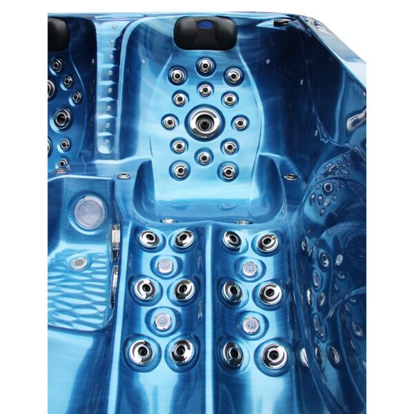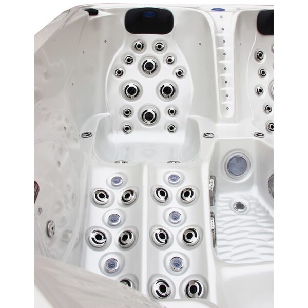 All jets are flush-mounted for maximum comfort and satisfaction. The hot tub features advanced cleaning systems with programmable cleaning cycles post-use.