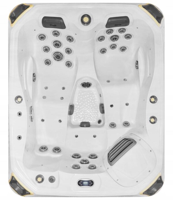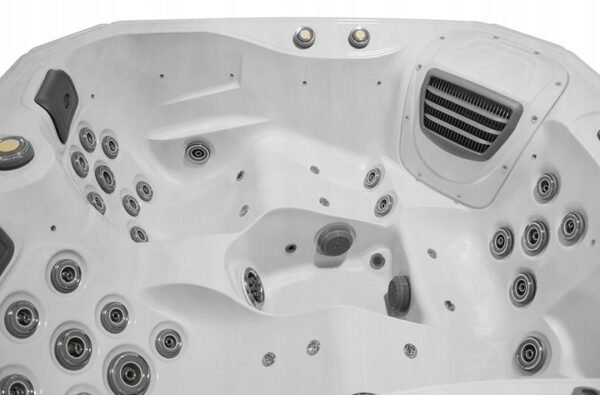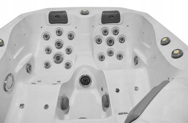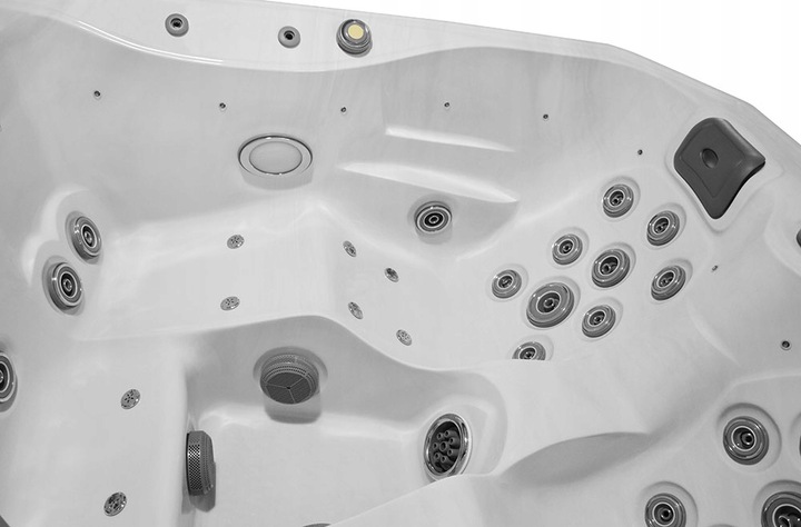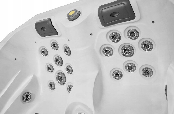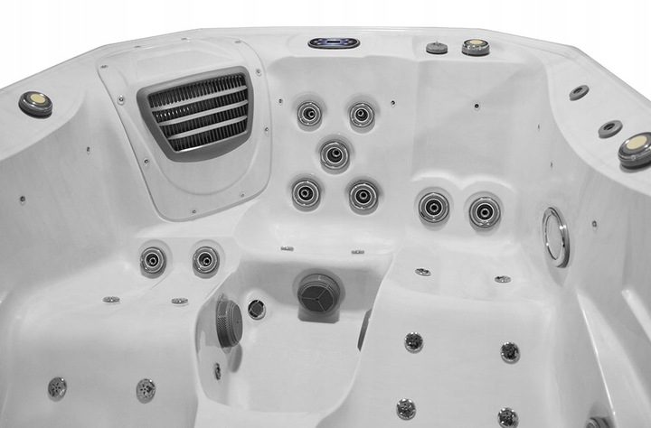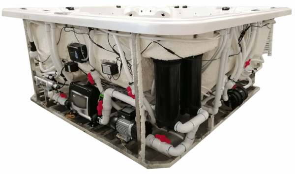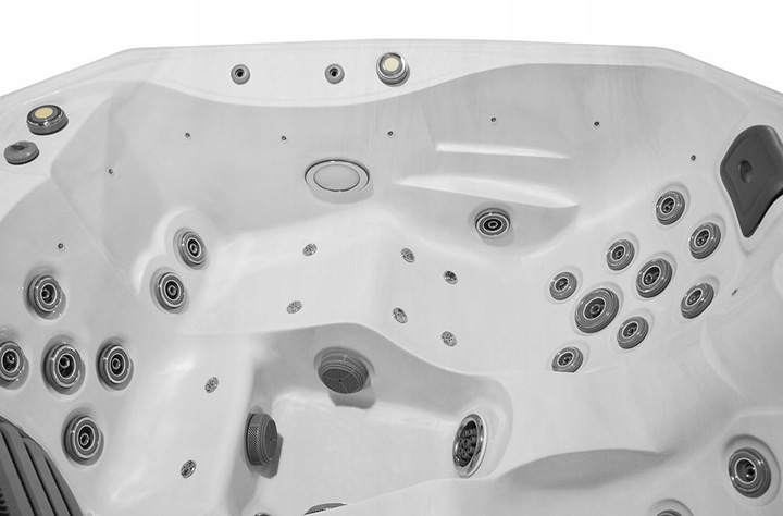 The structure is made of stainless steel. The entire bathtub is based on a stable stainless steel frame; the bathtub has a strong and durable support base, which is very important for larger bathtubs. The weight of such SPAs, from 250 kg to even 1500 kg, in swimming pools, including the weight of water and people, is a relatively large weight, which requires solid support, which is why a good bathtub design is so crucial.