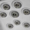 The jets in the bathtub are covered with chrome. You do not have to worry that the jets will become covered with limescale. Each water jet has an aeration function, which consists of adding air to the water system, increasing the power of the water massage. The aeration can be smoothly adjusted with a knob.