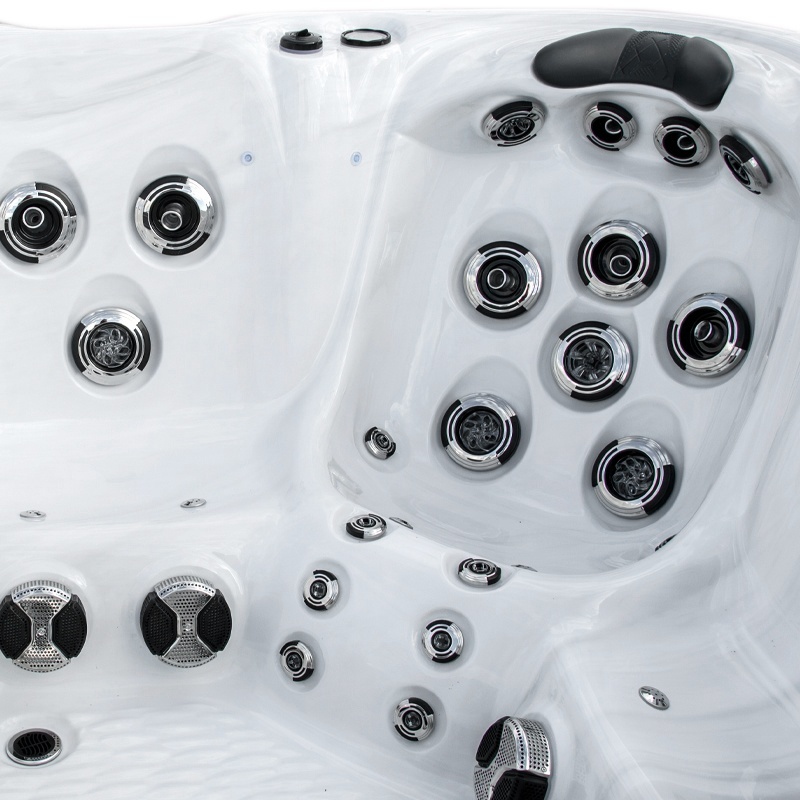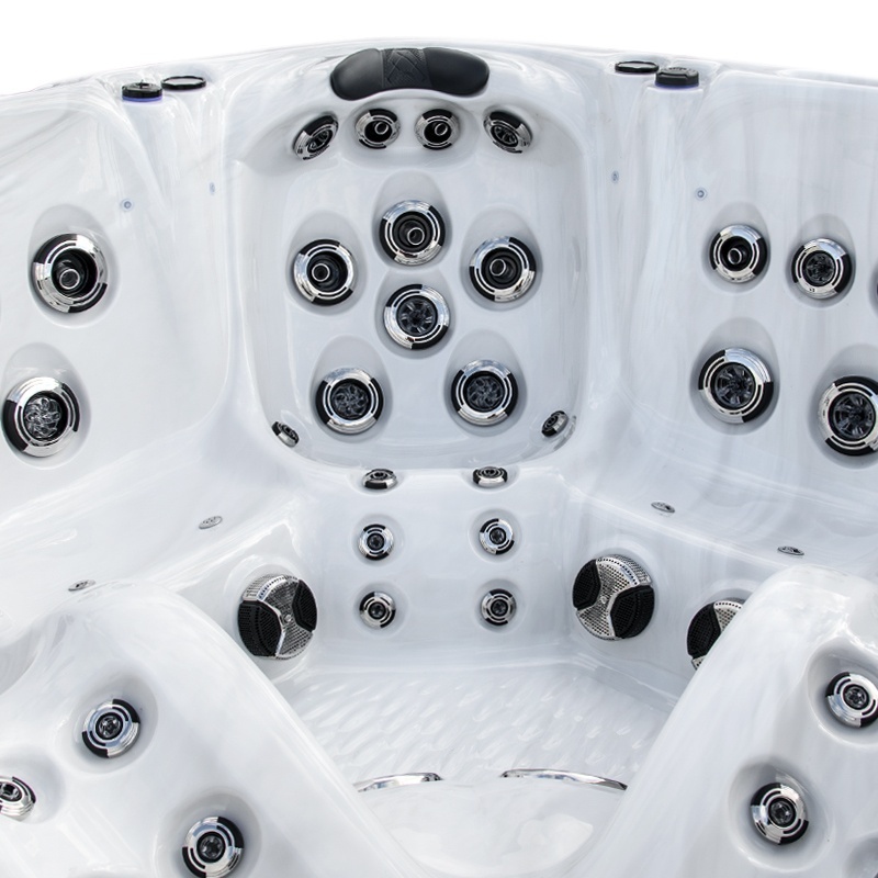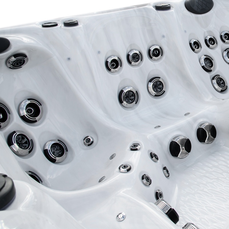All jets are flush-mounted in the acrylic, not protruding above the surface!