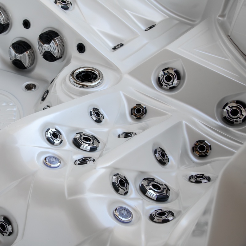 - Flush-mounted jets: All jets are embedded in the acrylic shell for maximum comfort (no protruding jets).