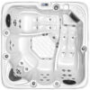 Standard equipment includes LED lighting, powerful pumps, ergonomic seating, full insulation, and smart filtration with freeze prevention for year‑round use.