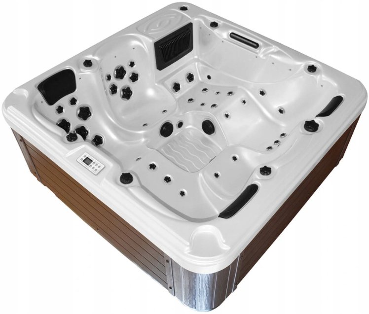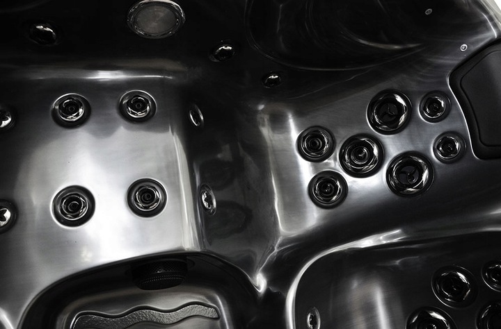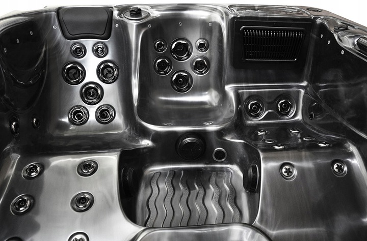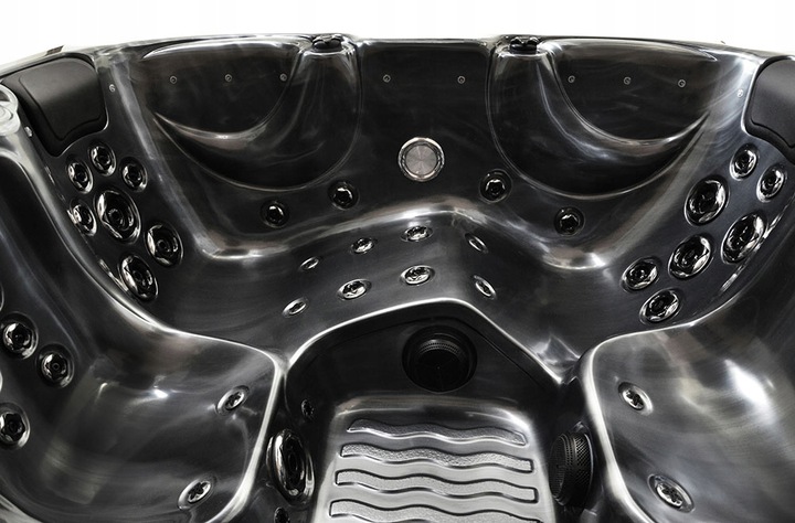 The structure is made of stainless steel. The entire bathtub is based on a stable stainless steel frame; the bathtub has a strong and durable support base, which is very important for larger bathtubs. The weight of such SPAs, from 250 kg to even 1500 kg, in swimming pools, including the weight of water and people, is a relatively large weight, which requires solid support, which is why a good bathtub design is so crucial.