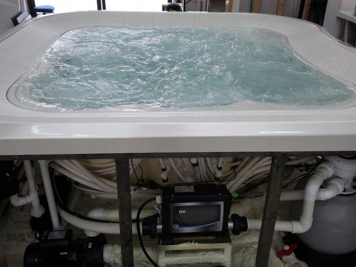 The structure is made of stainless steel. The entire bathtub is based on a stable stainless steel frame; the bathtub has a strong and durable support base, which is very important for larger bathtubs. The weight of such SPAs, from 250 kg to even 1500 kg, in swimming pools, including the weight of water and people, is a relatively large weight, which requires solid support, which is why a good bathtub design is so crucial.