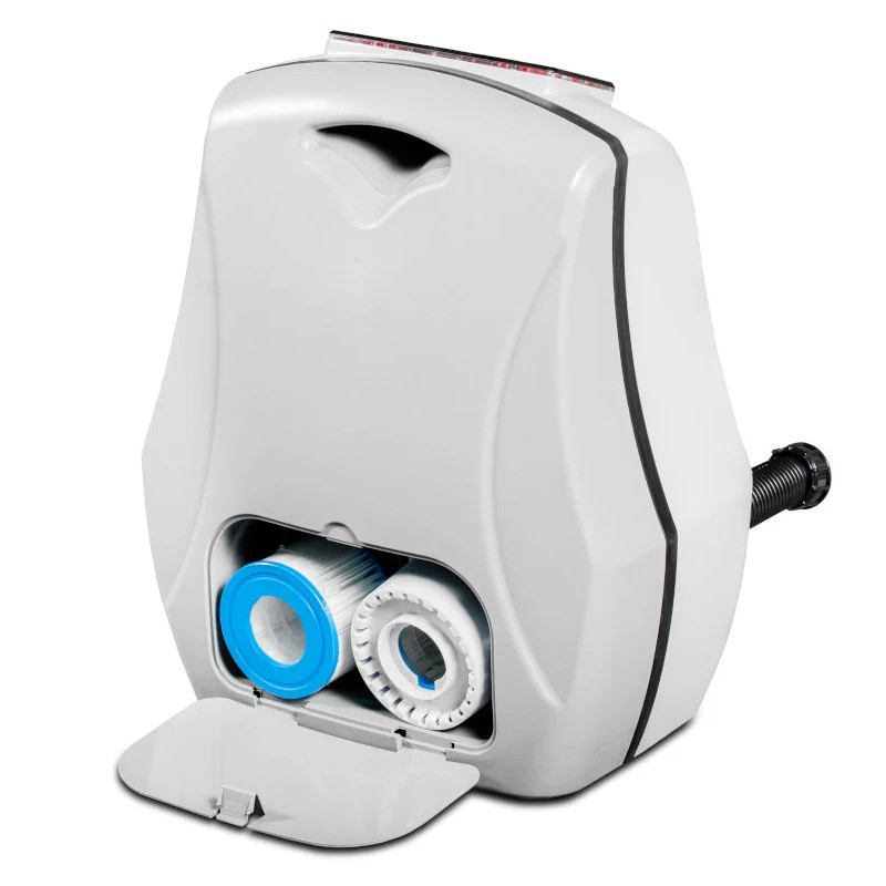 - Water filtration is automatic, which increases the comfort of use. The filter removal handle allows easy removal of the filter for replacement. Cartridge filters have 120 pleats and a filtration surface of 0.4 m2, which makes them the most advanced and efficient filters in the hydromassage pool market.