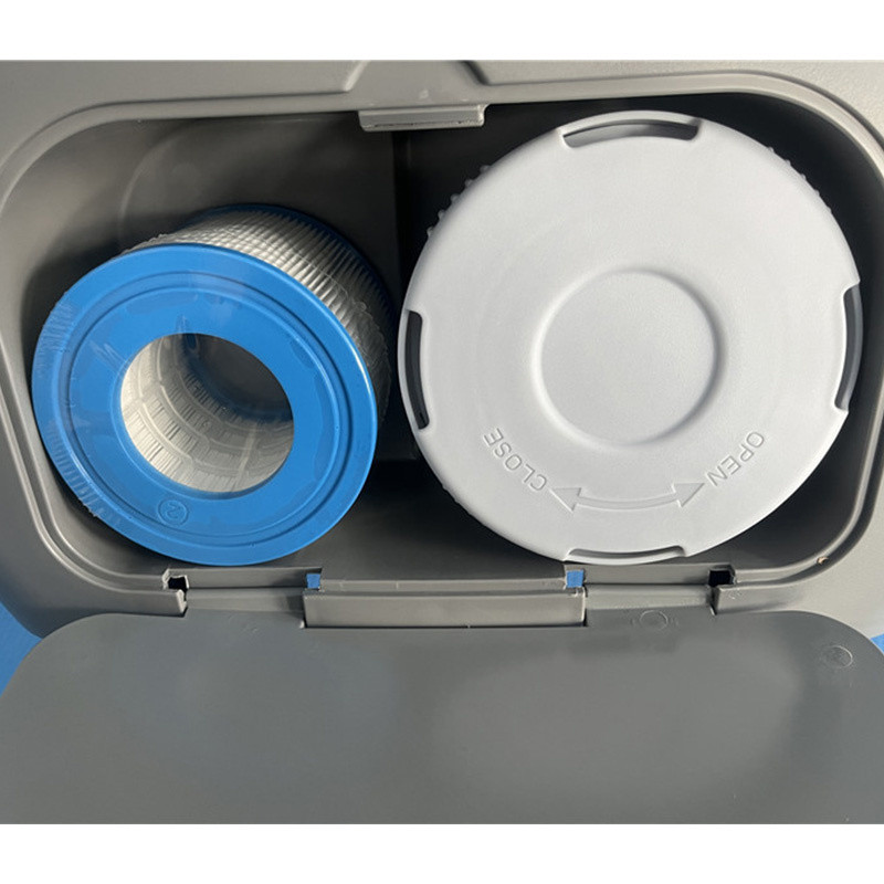 - Water filtration is automatic, which increases the comfort of use. The filter removal handle allows easy removal of the filter for replacement. Cartridge filters have 120 pleats and a filtration surface of 0.4 m2, which makes them the most advanced and efficient filters in the hydromassage pool market.