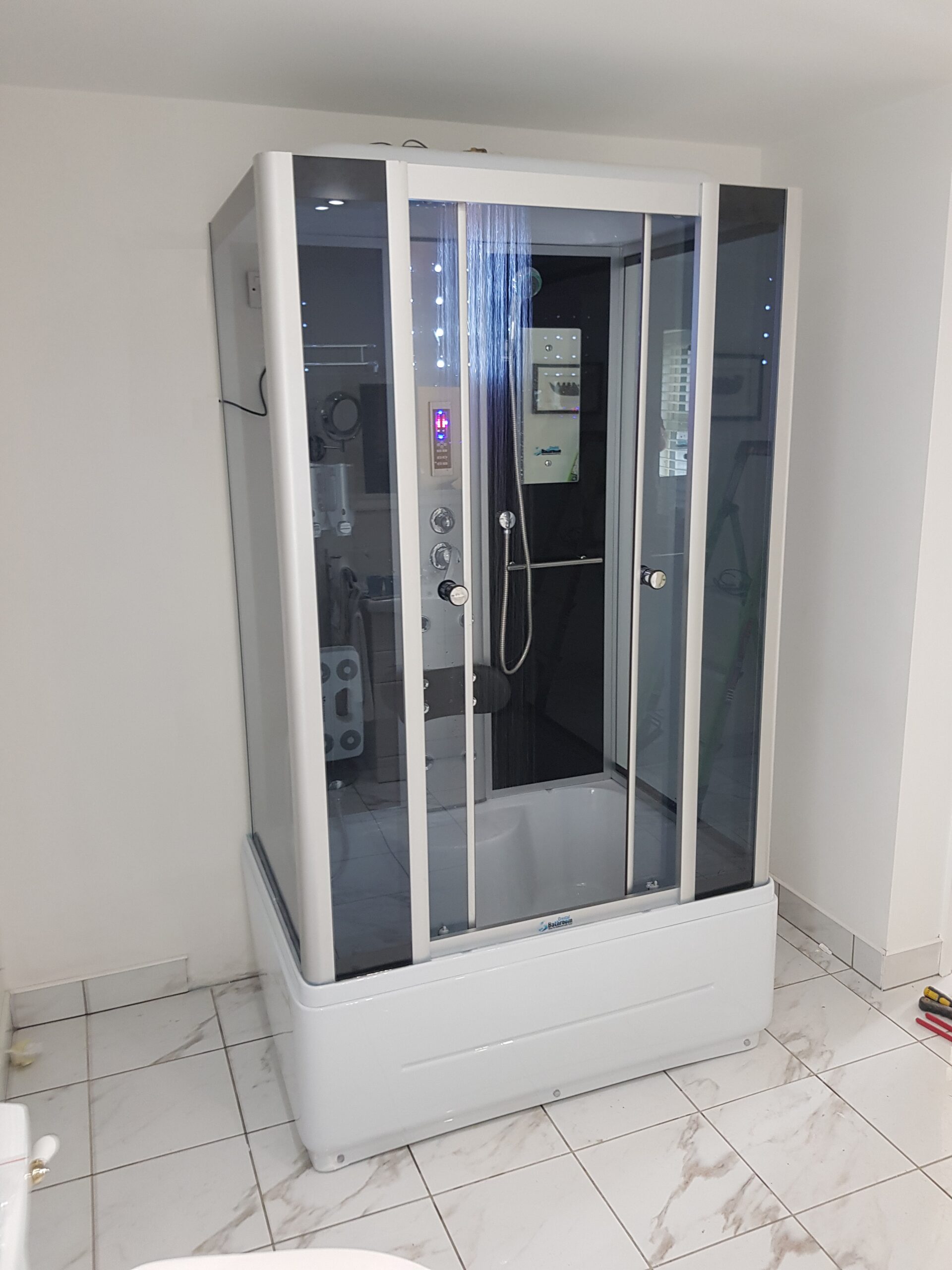 - Shower tray reinforced from below with a metal structure and 5 solid feet for level adjustment