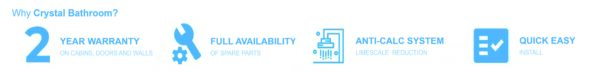 The Crystal Bathroom WSH311B shower cabin with hydromassage is a perfect blend of high-quality craftsmanship, innovative features, and stunning design. Choosing a Crystal Bathroom shower cabin means introducing durability, quality, the latest technology, and timeless elegance into your bathroom – a combination that will impress both you and your guests.