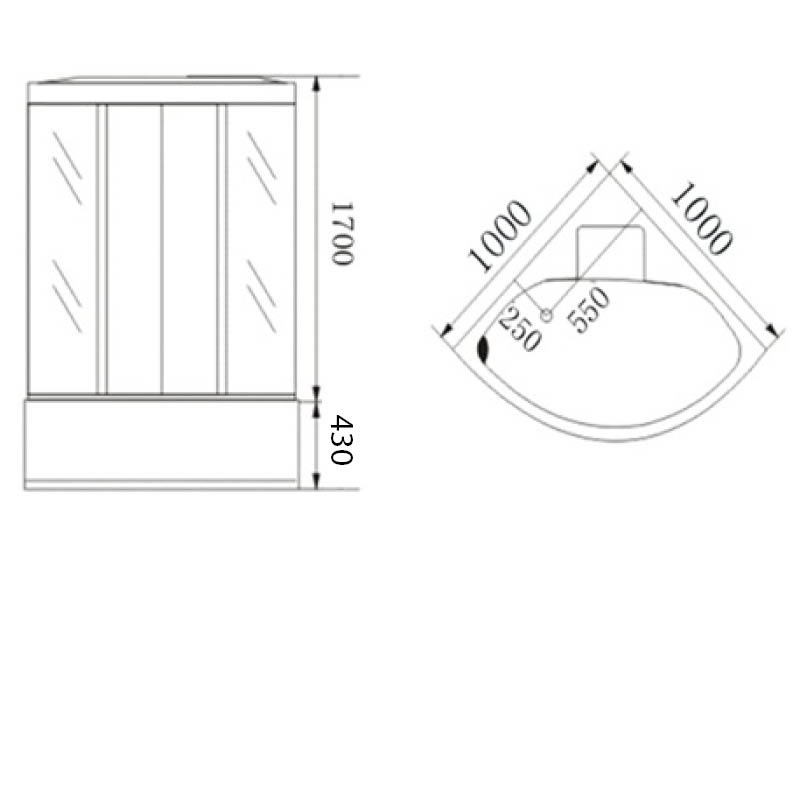 DIMENSIONS: 1000x1000x2150mm