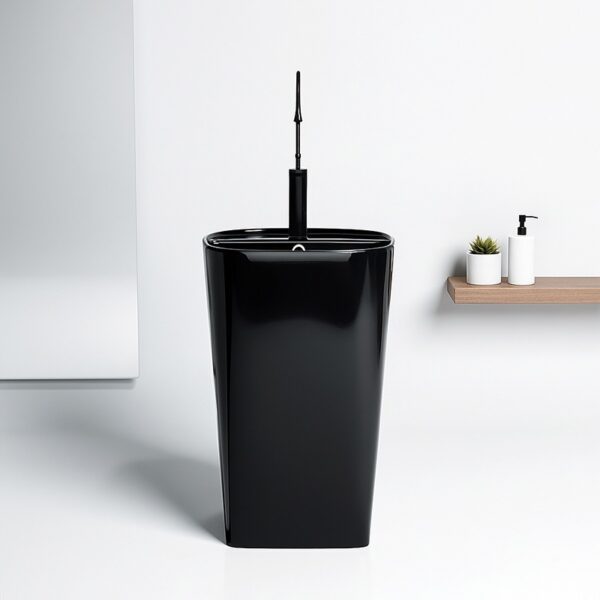 The CERYS freestanding ceramic wash basin is a unique monolithic pedestal-style model that combines modern design with everyday functionality. Its minimalist yet elegant form blends perfectly into any carefully designed bathroom interior. The generous dimensions, classic rectangular bowl, built-in tap hole, and overflow ensure comfort and practicality, making it both a stylish and functional bathroom feature.