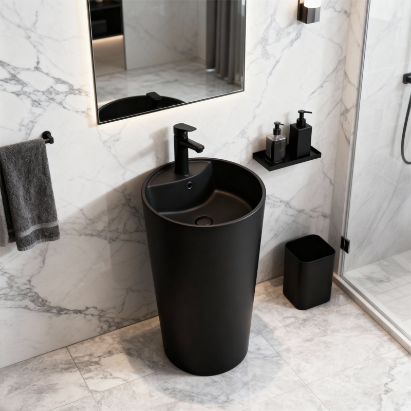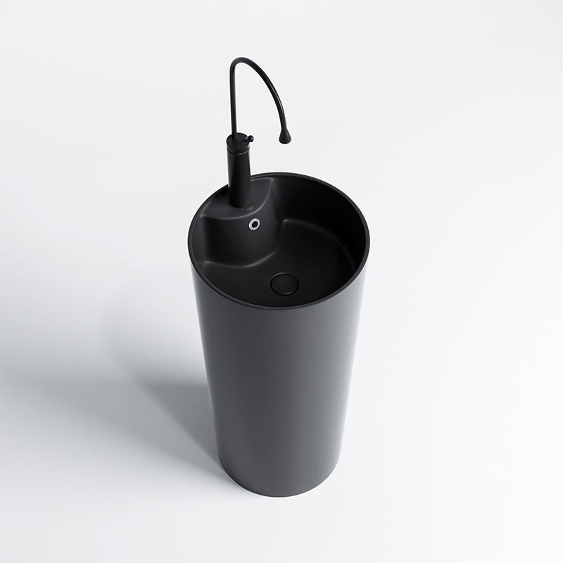 Freestanding ceramic wash basin round CORRINE Black matt 400 × 850 mm