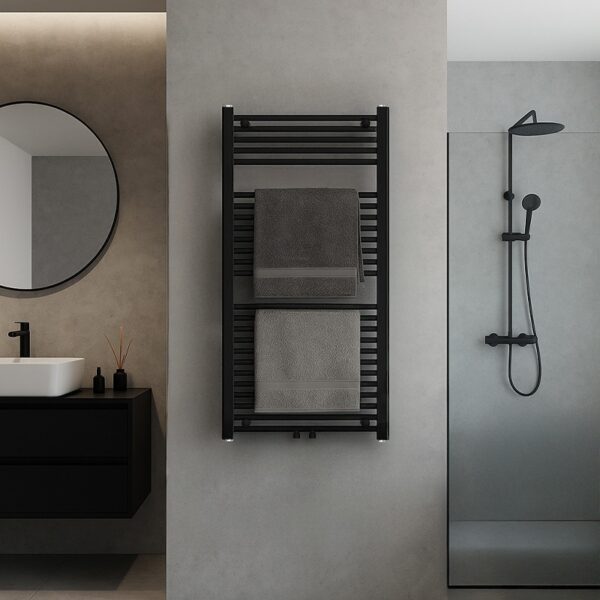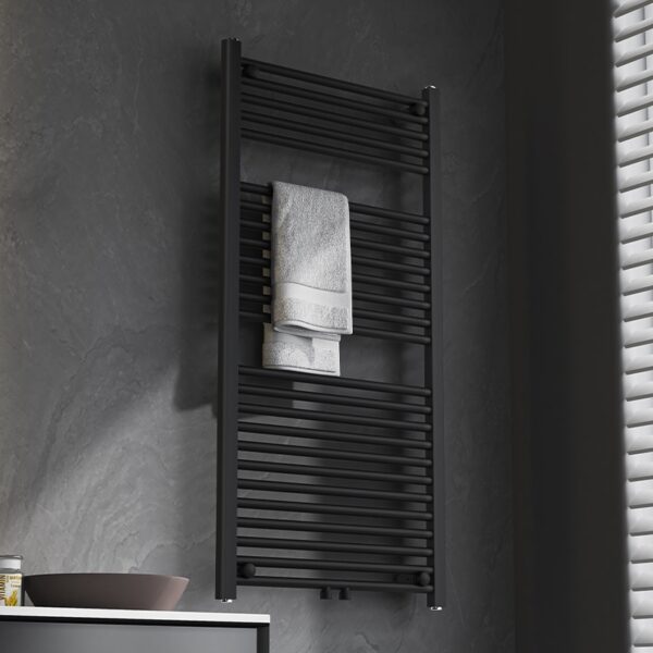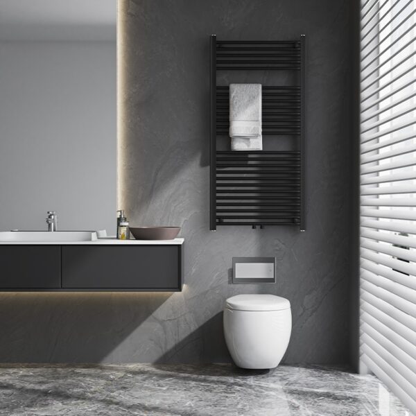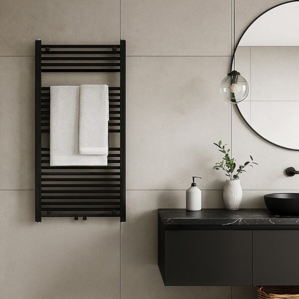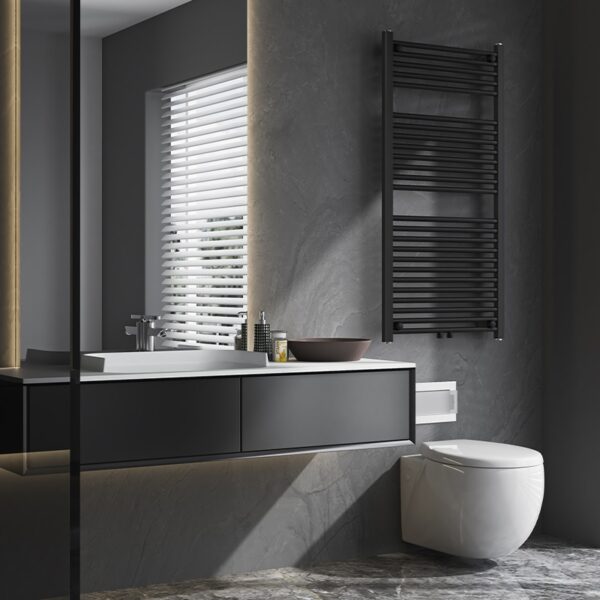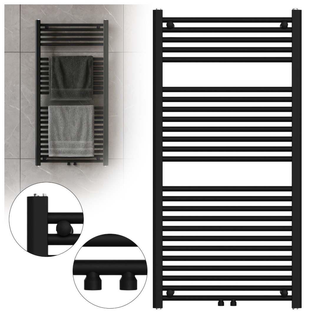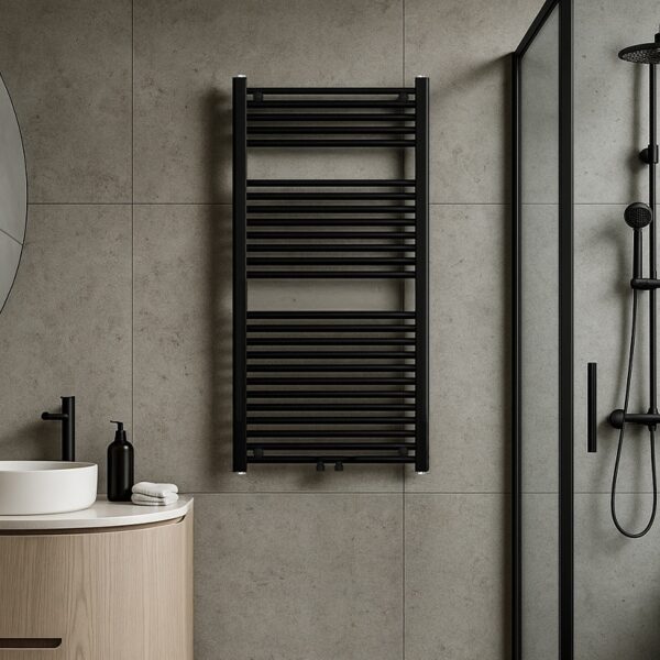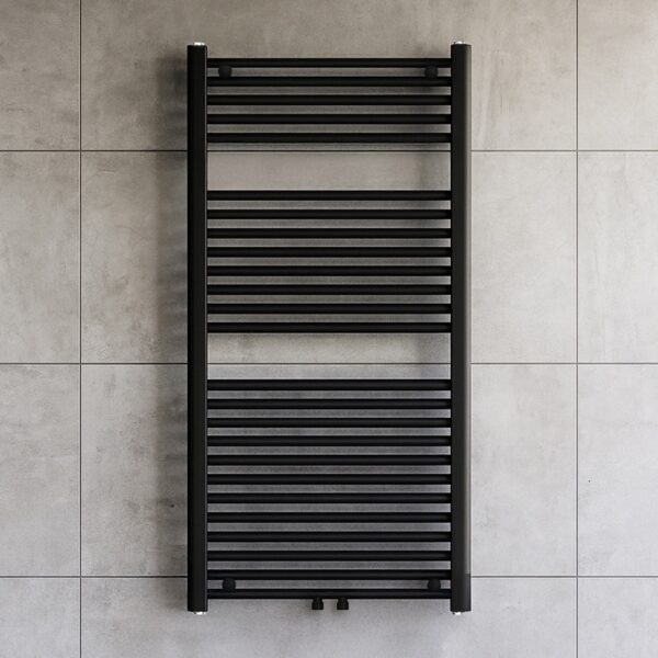 WALL-MOUNTED BATHROOM RADIATOR VERTICAL WATER LADDER 1200×600 mm ZULA BLACK