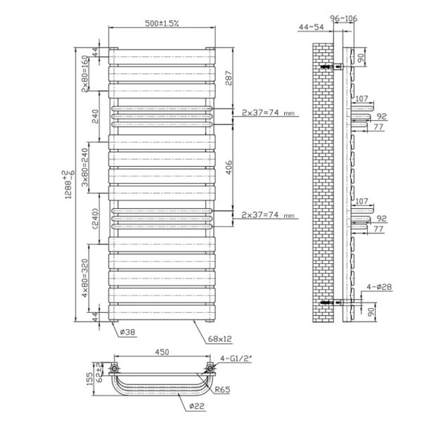 Standard G 1/2” connections make installation simple and compatible with most central heating systems on the market. The radiator connects traditionally from the bottom, ensuring seamless adaptation to existing plumbing setups.