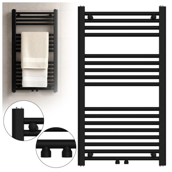 WALL-MOUNTED BATHROOM RADIATOR VERTICAL WATER LADDER 900×500 mm ZULA BLACK