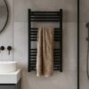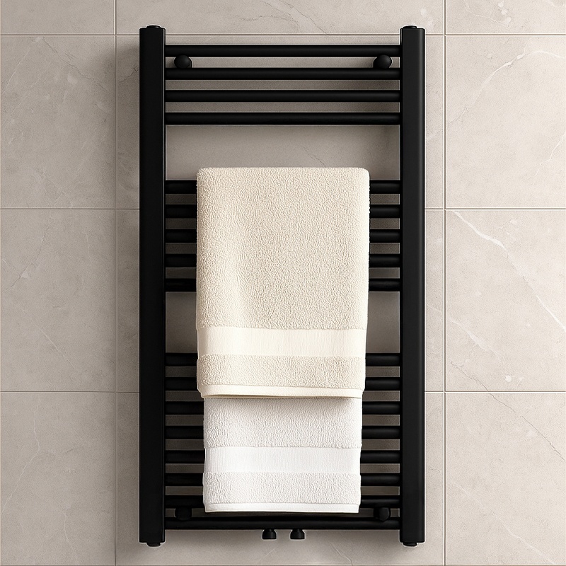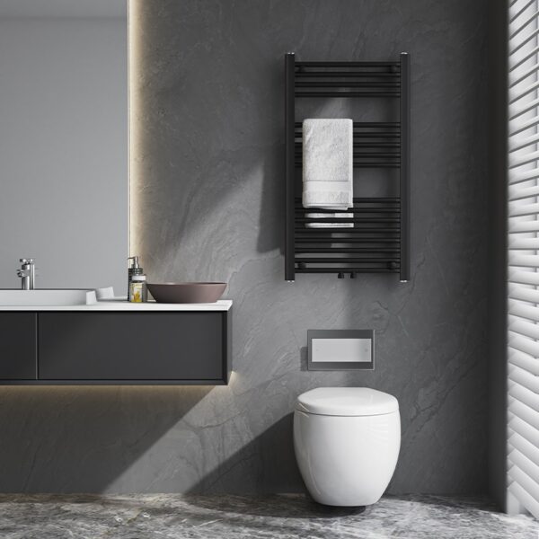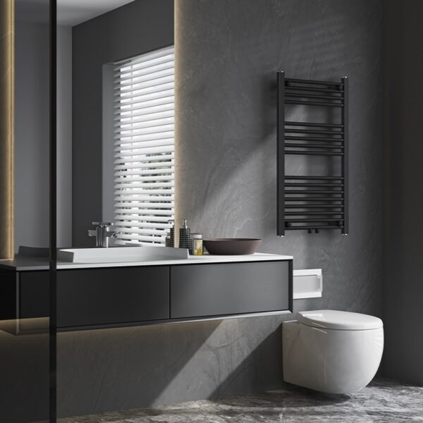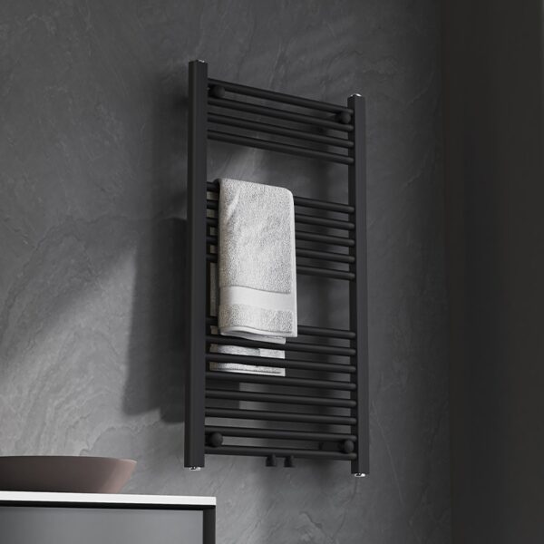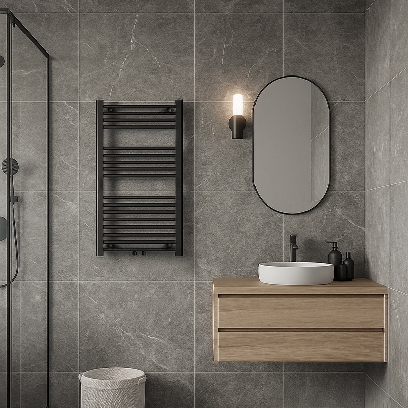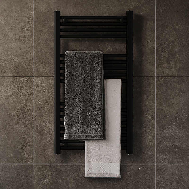 The black matte finish is one of the most sought-after trends in bathroom design. The radiator not only looks modern but also remains resistant to scratches and wear thanks to its durable steel body and high-quality paint coating.