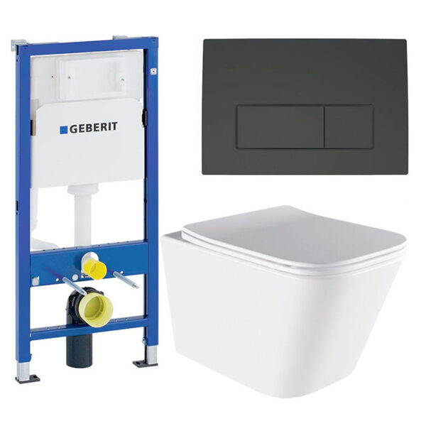 CONCEALED WC SET ANORA 03RIM WHITE TOILET BOWL + FRAME GB + BLACK MATT FLUSH PLATE 50GD