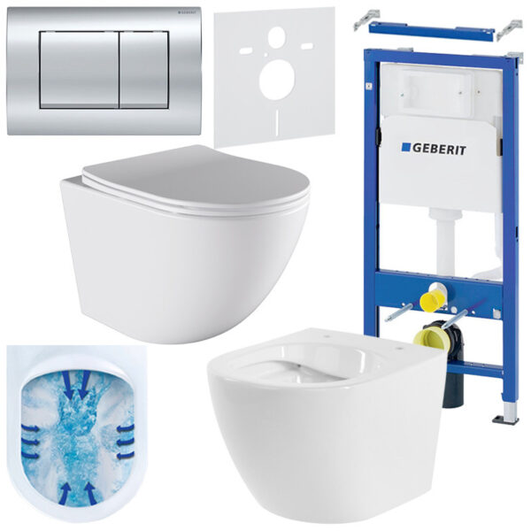 CONCEALED WC SET LINEA 03RIM WHITE TOILET BOWL + FRAME GB + CHROME FLUSH PLATE 30GD