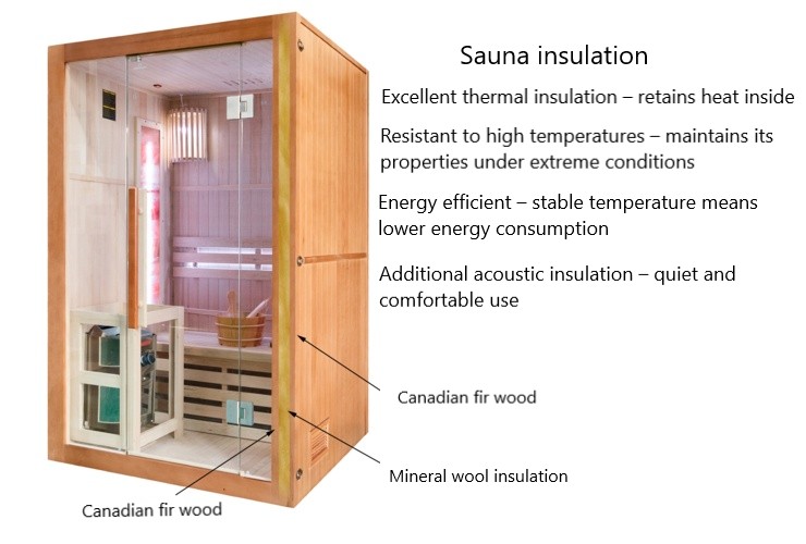 The 6 cm wall thickness provides excellent thermal insulation – it takes only around 30 minutes to reach the optimal temperature inside the sauna.