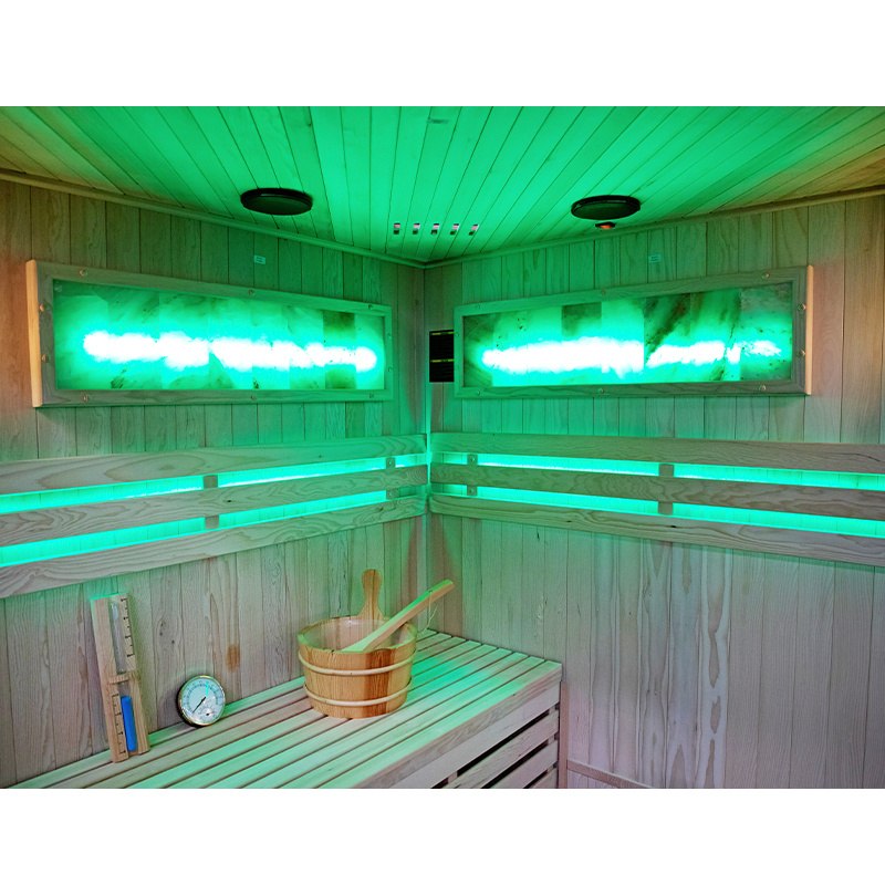 Salt therapy: Combines sauna heat with the healing properties of salt, improving air quality, supporting respiratory health, detoxifying the skin, and enhancing relaxation