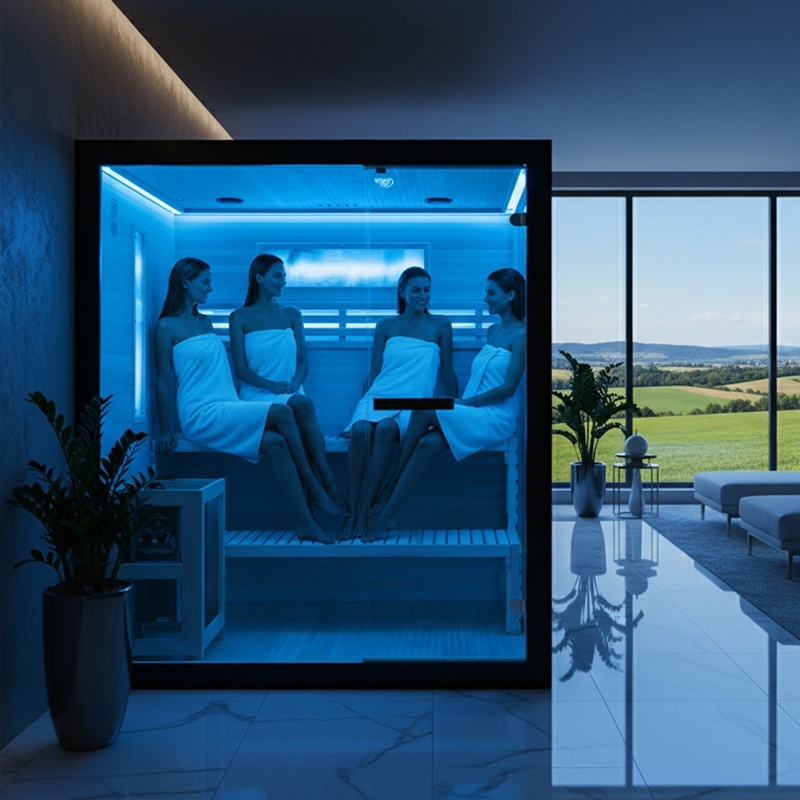 To enhance relaxation, the sauna includes: