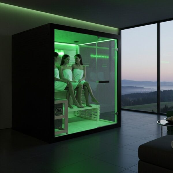 Discover elegant indoor saunas – a combination of timeless design, natural materials, and solid craftsmanship. This spacious model is designed for comfortable shared relaxation and delivers an authentic Finnish sauna experience in your own home.